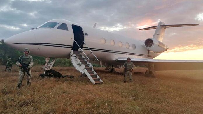A través de un comunicado la Sedena informó que elementos del Ejército y Fuerza Aérea Mexicanos, aseguraron una aeronave GULFSTREAM III, con la matrícula XB-RKG; así como, 246 kilogramos aproximadamente de un polvo blanco con características similares a las de la cocaína.
