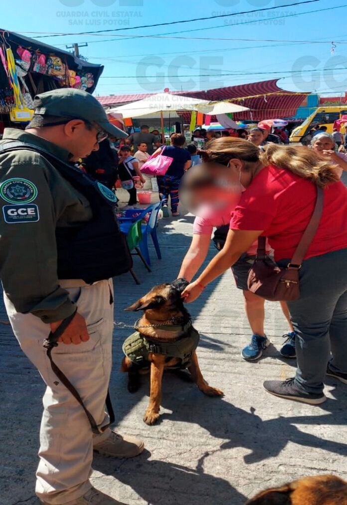 La Secretaría de Seguridad y Protección Ciudadana del Estado (SSPC), continúa con acciones de proximidad social con las y los potosinos, a través del Agrupamiento canino K9 de la Guardia Civil Estatal (GCE), con el objetivo de reforzar los mecanismos de respuesta a auxilios ciudadanos y garantizar entornos de paz social.