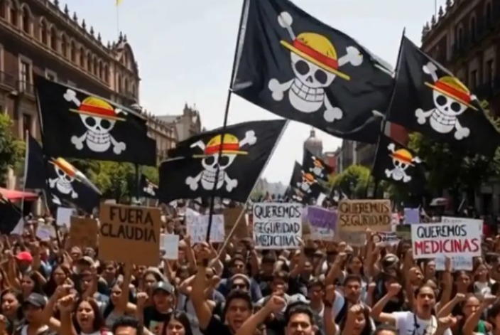 Los jóvenes mexicanos adoptaron la bandera del anime One Piece como símbolo de su causa, en solidaridad con aquel movimiento.