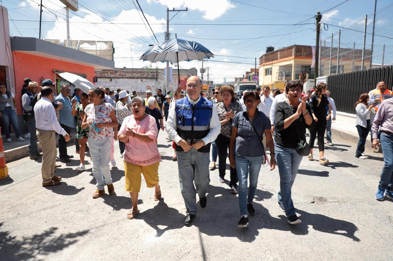 La obra contempla una intervención integral, que incluye la instalación de una nueva red de drenaje, debido al colapso del sistema actual por su antigüedad, así como la colocación de tubería de agua potable, alumbrado público, rampas para personas con discapacidad, pasos peatonales y señalética vial.
