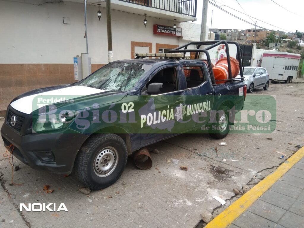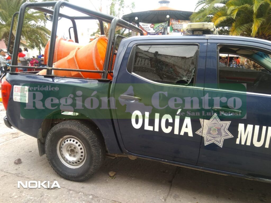 ZARAGOZA, S. L. P. – Fueron lapidadas patrullas y la fachada de Presidencia Municipal de Zaragoza, al finalizar el baile amenizado por la banda La Trakalosa, el problema fue iniciado por la brutalidad policial de los agentes de la Dirección General de Seguridad Pública Municipal, quienes estaban encargado de resguardar el orden y al tratar de someter a un sujeto que andaba, al parecer, en estado de ebriedad utilizaron fuerza excesiva.