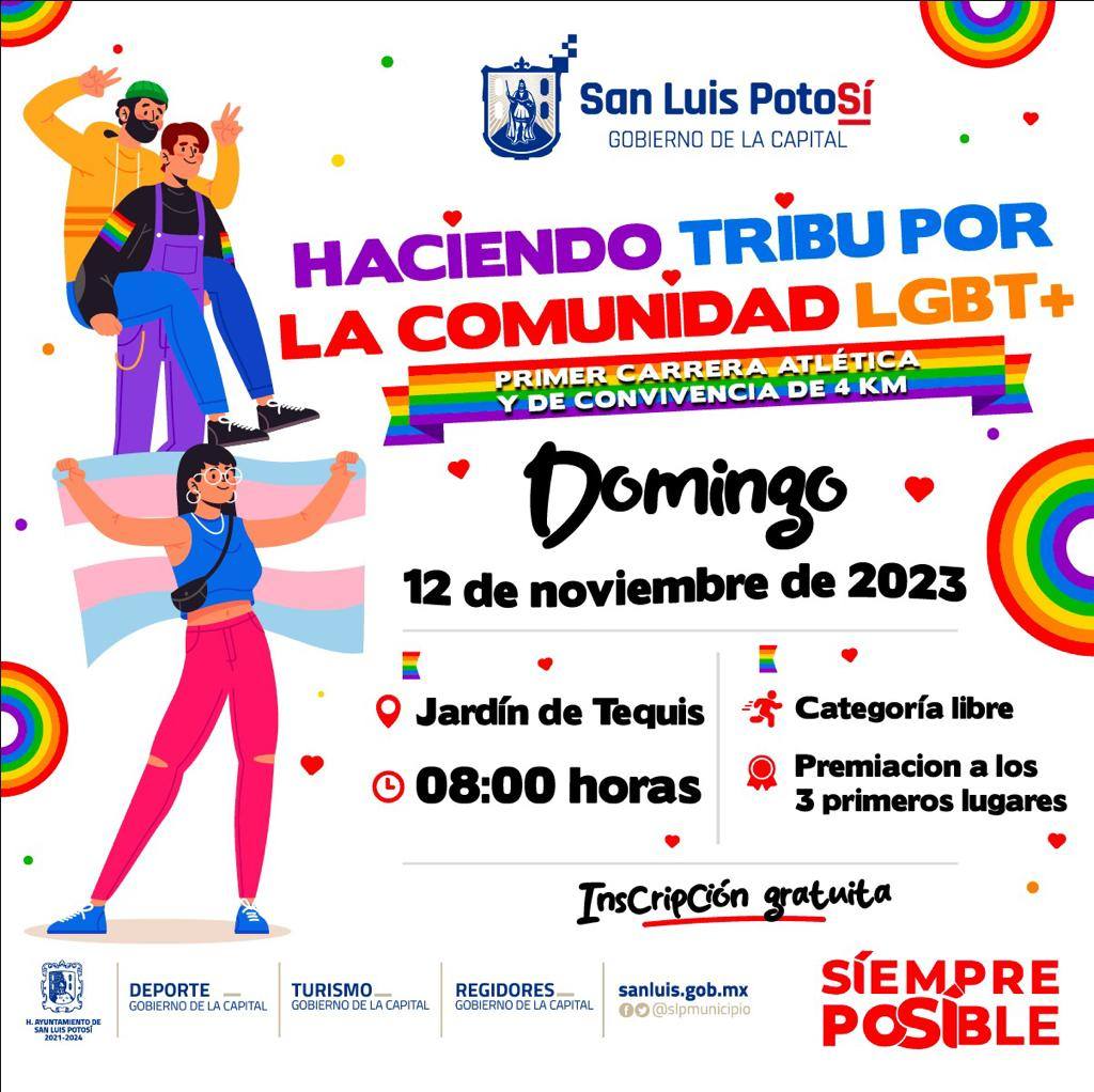 La Regidora Ángeles Hermosillo Casas, junto a las direcciones municipales de Turismo y Deporte, invitan a toda la población a participar en la primera carrera y convivencia denominada “Haciendo Tribu Por la Comunidad LGBTQ+”, que se realizará el próximo domingo 12 de noviembre, en el marco del tradicional paseo dominical de la Avenida Carranza.