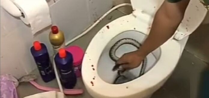 Según se dijo, la serpiente llegó al inodoro arrastrándose por las tuberías y encontró en ese retrete la salida que había estado buscando pero coincidió que, en ese preciso instante, se encontraba en el lugar el hombre al que terminó mordiendo.