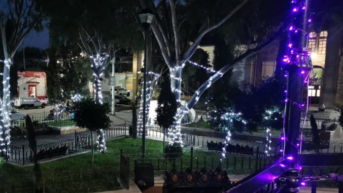 Fueron colocadas decenas de series de luces navideñas, de colores tenues, un azul poco intenso que pareciera plasmar el cierzo invernal. Para propios y extraños fue una grata sorpresa cuando vieron a una cuadrilla de trabajadores del municipio cuando colocaban las series en los árboles y el quiosco, pero más aún fue su sorpresa cuando por la noche vieron miles de pequeñas luces en la plaza.