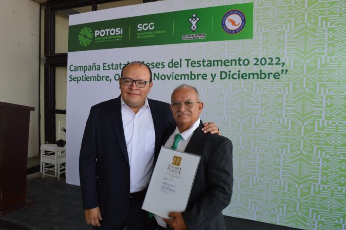 Connacionales potosinos que radican en Estados Unidos de América, podrán obtener tranquilidad y certeza sobre su patrimonio y bienes, mediante el Testamento Migrante que promueve la administración estatal que preside el Gobernador de San Luis Potosí, Ricardo Gallardo Cardona, a través del Instituto de Migración y Enlace Internacional (IMEI), en coordinación con la dirección del Notariado Potosino y el Colegio de Notarios Públicos.