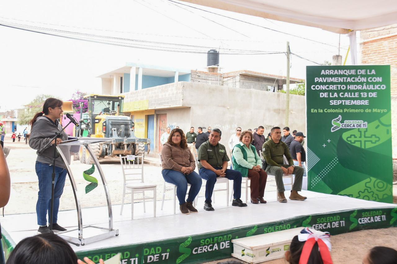 Soledad de Graciano Sánchez, S.L.P.– El Ayuntamiento de Soledad de Graciano Sánchez dio inicio a los trabajos de pavimentación con concreto hidráulico en la calle 13 de Septiembre, en el tramo comprendido entre las calles 5 de Mayo y 18 de Marzo, dentro de la colonia Primero de Mayo.