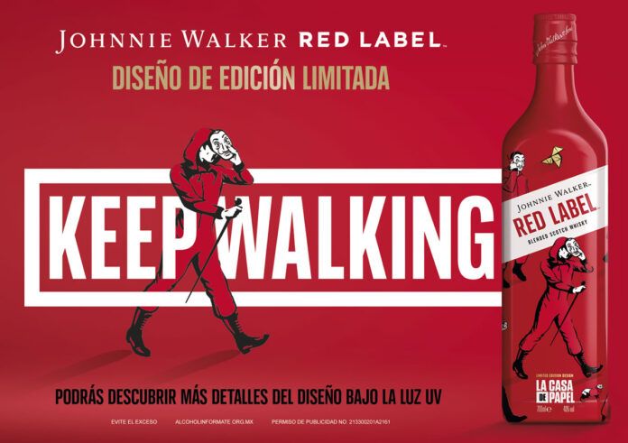 Johnnie Walker, la marca de whisky escocés número 1 del mundo, presenta hoy un diseño de edición limitada de su icónica botella Johnnie Walker Red Label inspirada en el fenómeno global de Netflix, La Casa de Papel. Cuando dos íconos de la cultura se unen, grandes cosas suceden. Con una colaboración inédita, Johnnie Walker le entrega a los fans del whisky y a aquellos seguidores de La Casa de Papel, una edición limitada que cambiará los paradigmas de cómo debe verse y sentirse el whisky, dando un nuevo significado al reconocido lema de la marca ‘Keep Walking’ con la icónica línea de la serie ‘Sin vuelta atrás’.