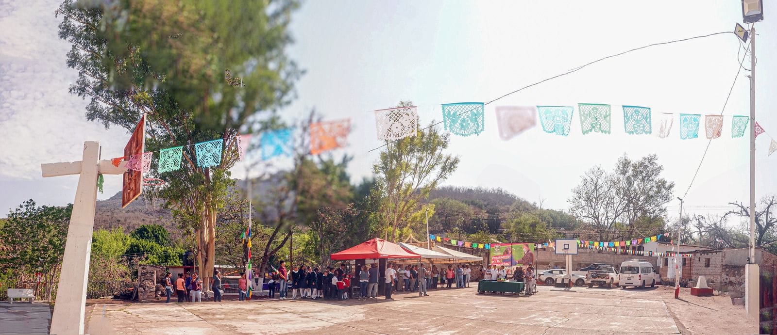 La jornada comenzó con los honores a la bandera, en los que participaron los habitantes de la comunidad, autoridades ejidales y estudiantes de las instituciones educativas locales.