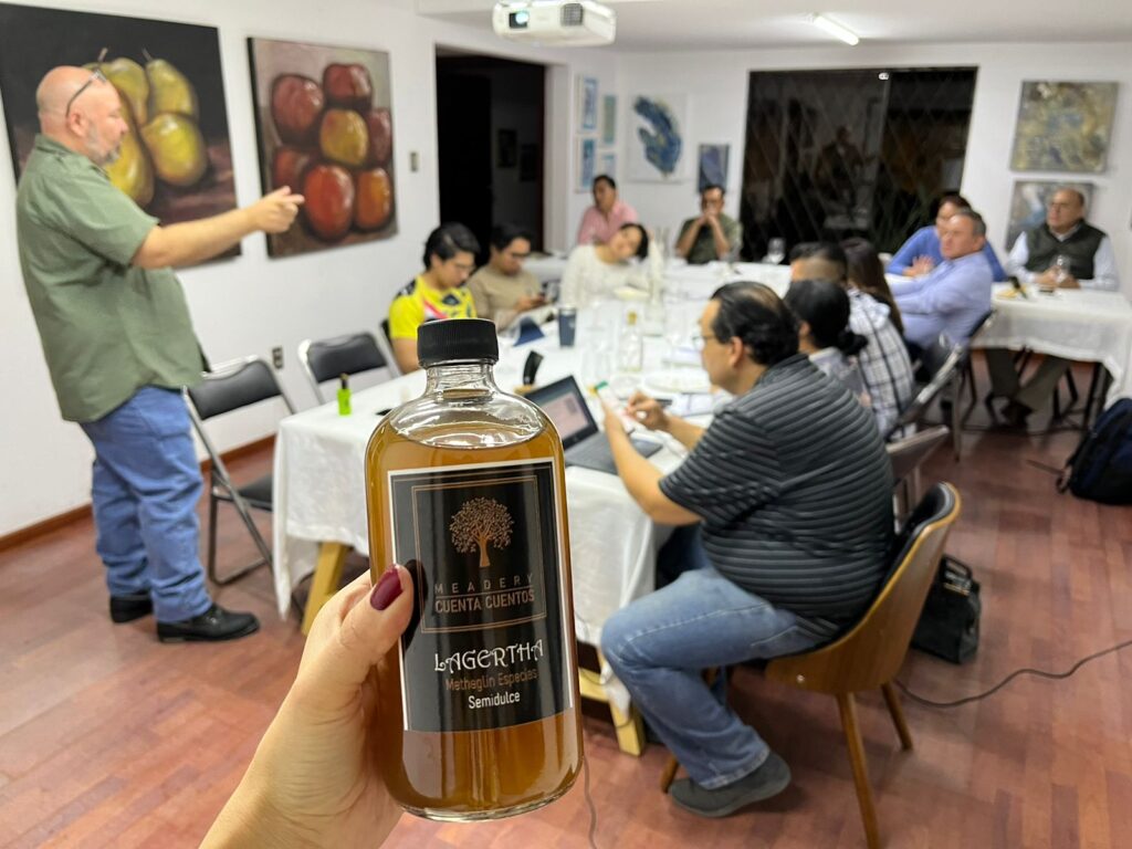 “En la hidromiel es que hay que tener paciencia, en un mes una cerveza está lista, en cambio una hidromiel mínimo unos cuatro o tres meses de fermentación, sí es más tardado, pero es otra opción para los que les gustan los fermentos. No llega a ser un vino de miel, el término correcto es hidromiel, ya que no llega a ser tan alcohólica, hay versiones dulces, semi dulce, seca. Hay amplia gama, con especias, frutas o cambias el tipo de miel y cambia el perfil”, agregó Alejandra.