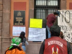 Estudiantes universitarios tomaron esta mañana el edificio central de la UASLP, en protesta por las altas cuotas que cobra la institución. Porqué alegan: “La educación es un derecho no un privilegio”.