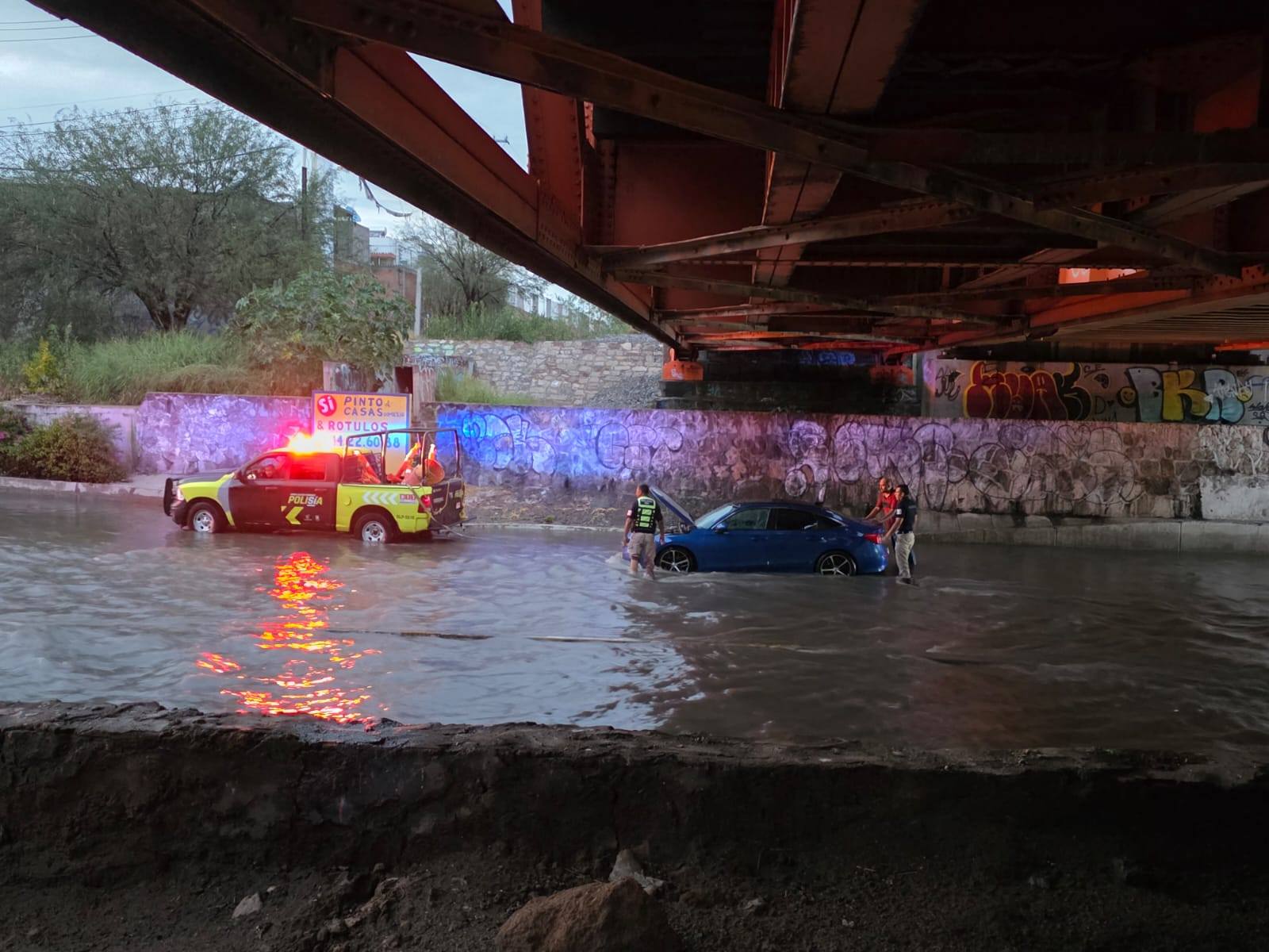 Las fuertes lluvias registradas desde la noche del sábado hasta la mañana del domingo ocasionaron afectaciones en distintos puntos de la capital potosina. Calles y avenidas principales quedaron anegadas, complicando la movilidad durante varias horas. Entre los tramos más afectados estuvieron el Puente Manuel José Othón, Puente Naranja, Puente Pemex y el desnivel de la Glorieta Real Inn. La acumulación de agua obligó a las autoridades a cerrar la circulación en varias vialidades.