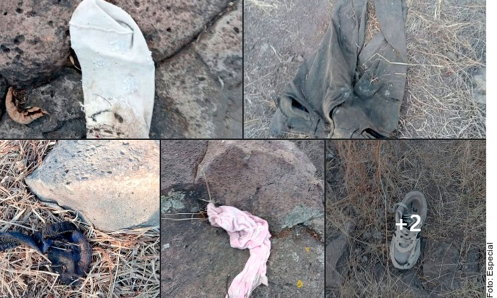 Además de los tres cuerpos, las buscadoras reportaron la localización de fragmentos humanos, entre ellos piezas de cráneo, húmero, peroné y tibia. En la zona también se aseguraron pertenencias adicionales que no han sido vinculadas directamente a un cuerpo específico, como unos tenis New Balance blancos con negro, talla 25, y un pants negro marca Aeropostale.