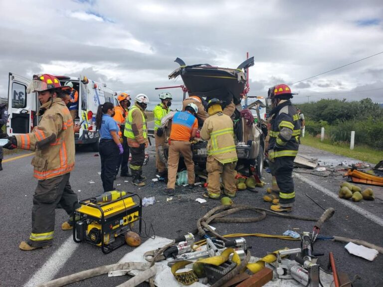 SANTA MARÍA DEL RÍO, S. L. P. – Perdieron la vida cinco personas al volcar una camioneta en la carretera 57, en el tramo Querétaro-San Luis, en los límites de San Luis de la Paz y Santa María del Río. Al lugar acudieron paramédicos y personal del cuerpo de Bomberos para rescatar los cuerpos de las víctimas mortales y rescatar de entre los fierros retorcidos a los lesionados, quienes fueron llevadas a un hospital cercano.