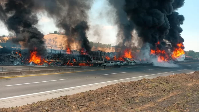 El reporte preliminar por la misma dependencia señala que hay cinco fallecidos; sin embargo, planteó la posibilidad de más víctimas que murieron calcinadas entre los vehículos.
