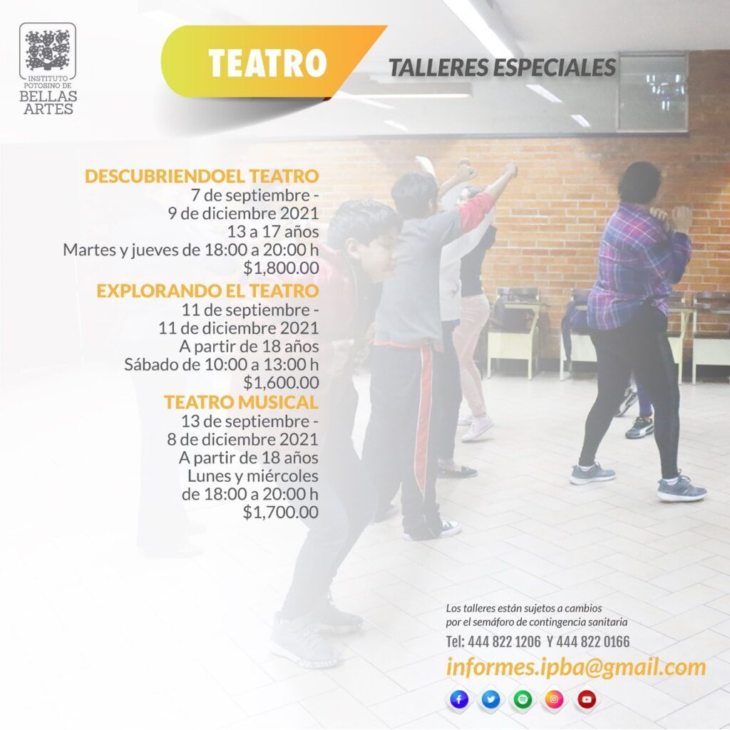 Para mayor información, consultar las redes sociales del Instituto Potosino de Bellas Artes: Facebook y YouTube “Instituto Potosino de Bellas Artes”, Twitter “@IPBASLP”, Instagram “@IPBASLP_” y Spotify “IPBA SLP”. Para contacto directo, se encuentran disponibles las líneas telefónicas (444) 8-22-12-06 y 8-22-01-66 y el correo electrónico del IPBA: informes.ipba@gmail.com.