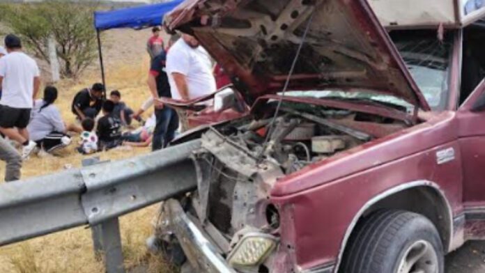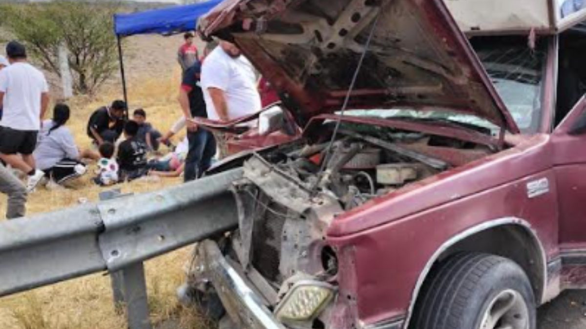 El vehículo donde viajaban es una camioneta Chevrolet, de modelo atrasado, guinda, con camper metálico, al parecer ocurrió una falla mecánica y el automotor se proyectó contra la barra metálica de contención y por el fuerte impacto, el acero penetró a la carrocería, una mujer perdió la vida y resultaron lesionadas 10 personas, se dijo que entre los heridos hay varios menores de edad.