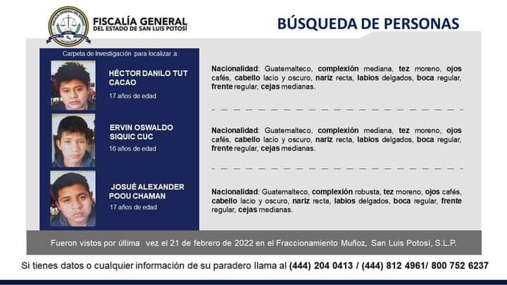 Cualquier informe sobre el paradero de los tres niños guatemaltecos, podrán hacerlo al 444 204 0413/ 444 812 4961.