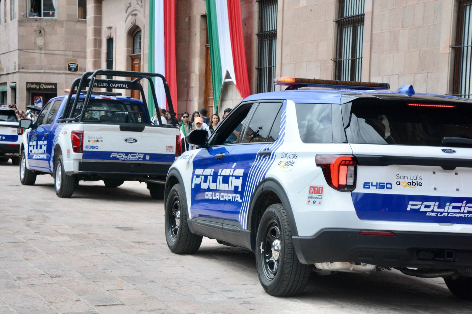Durante el desfile, se presentaron las nuevas patrullas municipales, descritas como “modernas y equipadas con tecnología de última generación”, lo que proyecta la imagen de una policía fortalecida, profesional y a la vanguardia en San Luis Potosí.
