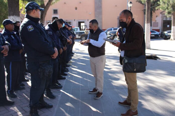 VILLA DE REYES, S. L. P. – Es prioritario para las autoridades locales que los agentes municipales cuenten con capacitación y la certificación de la Academia Estatal de Policía, para estar en condiciones de brindar a la población y eficaz y eficiente, para eso se trabaja de la mano con la Secretaría de Seguridad Pública Estatal y la Secretaría de la Defensa Nacional, dijo la presidenta Erika Briones, luego de la revisión que se hizo en la corporación policíaca villarreyense.