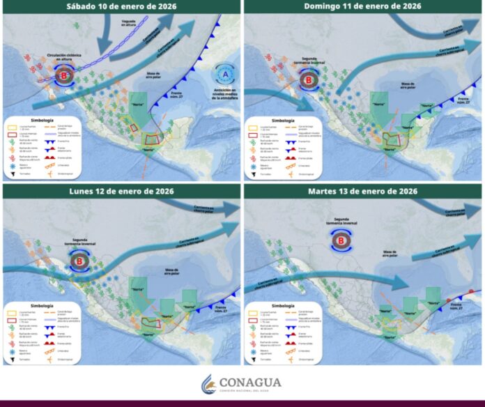 La Comision Nacional del Agua (CONAGUA) informo que la entrada del frente frio numero 27, en combinacion con su masa de aire polar y un evento de Norte prolongado, generara condiciones meteorologicas adversas en varias regiones del pais, incluyendo San Luis Potosi, durante el fin de semana y hasta el proximo martes.