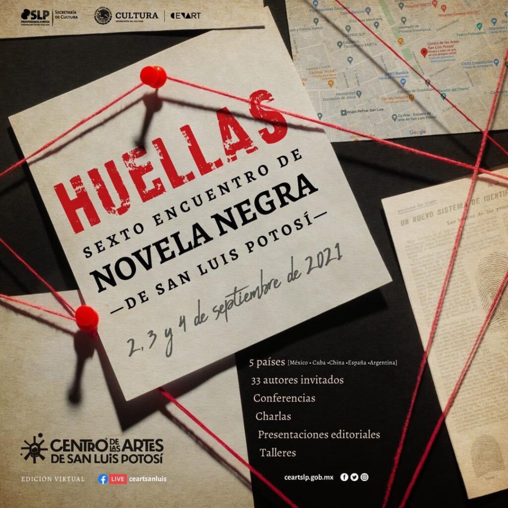 La Secretaría de Cultura (SECULT) y el Centro de las Artes de San Luis Potosí Centenario (CEART), preparan el Encuentro Internacional de Novela Negra “Huellas 2021” que tendrá a Argentina como invitado especial, y que se desarrollará del 02 al 04 de septiembre, ofreciendo al público diversas actividades de acercamiento y difusión de este género literario.