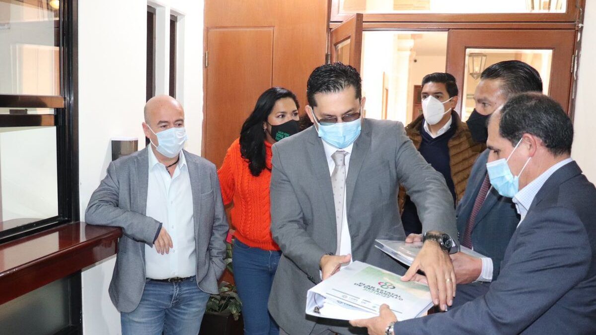El Congreso del Estado a través de la Oficialía de Partes recibió el documento entregado por Cutberto Mario Tenorio Antonio, director general de Planeación y Presupuesto y Gustavo Rosiles Sánchez, director de Planeación, ambos de la Secretaría de Finanzas (Sefin), así como por Juan Pablo Escobar Martínez, subsecretario de Enlace Interinstitucional de la Secretaría General de Gobierno. Los funcionarios estatales fueron recibidos por el presidente de la Junta de Coordinación Política (Jucopo) del Congreso del Estado, José Luis Fernández Martínez y la diputada Emma Idalia Saldaña Guerrero.