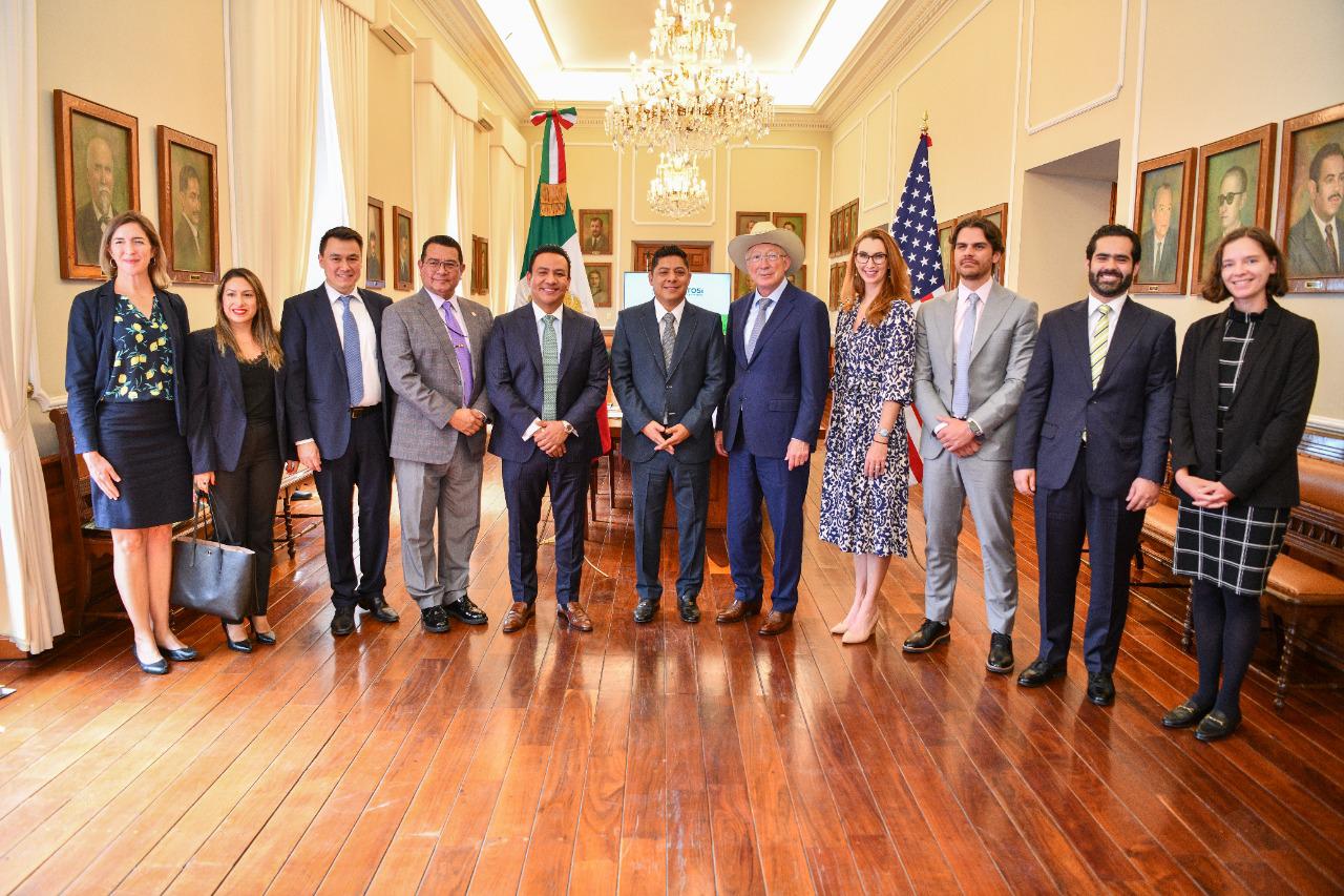 Durante la visita diplomática al Estado, el embajador Ken Salazar reconoció el esfuerzo que se ha dado durante los últimos meses para recuperar espacios de la economía afectados por la pandemia en San Luis Potosí y que guardan una estrecha relación en el intercambio comercial entre los Estados Unidos y México.