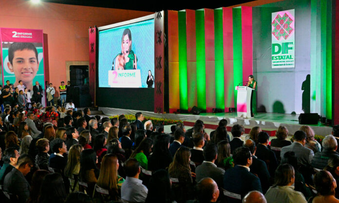 Las diputadas Dolores Eliza García Román, presidenta de la Directiva del Congreso del Estado, Liliana Flores Almazán y Emma Saldaña Guerrero coincidieron en señalar los buenos resultados en atención a grupos vulnerables que ha mantenido el Sistema DIF Estatal, presidido por la Licenciada Ruth González Silva, y que fueron presentados durante su Segundo Informe de Actividades.