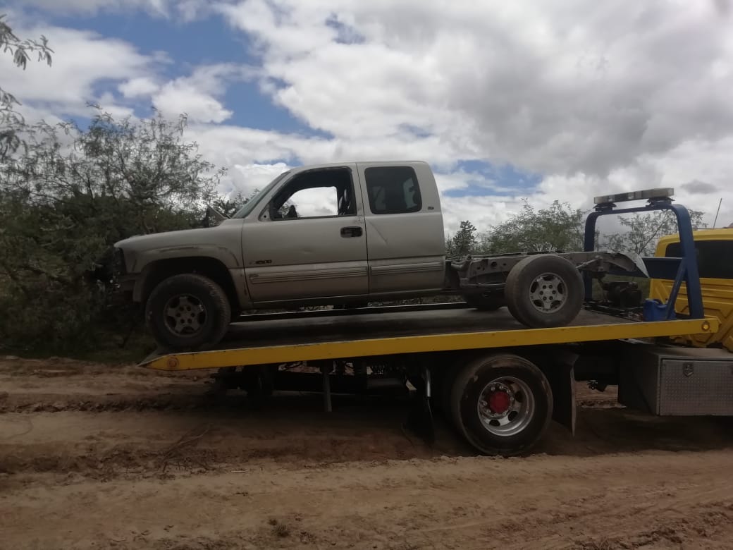 Durante los operativos de búsqueda, implementados por la carretera estatal 22, en la comunidad La Esperanza, del municipio de Zaragoza, se aseguró una camioneta marca Chevrolet, tipo pick-up, gris, sin placas de identificación, la cual tenía indicios de desvalijamiento. Tiene reporte de robo del 12 de junio de 2021, en el fraccionamiento Dalias del Llano.