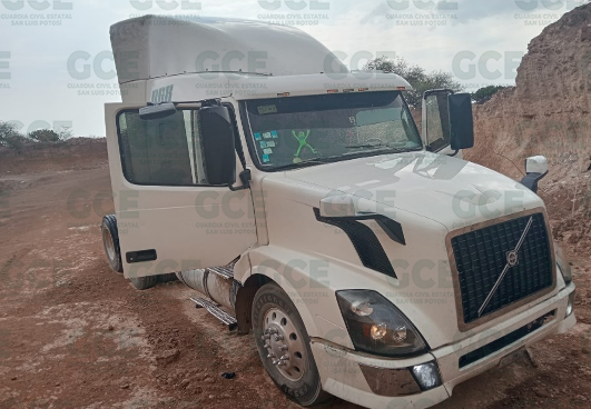 Por otra parte, los agentes se abocaron a la pronta búsqueda de un vehículo pesado robado horas antes. Se trata de un tractocamión Volvo, modelo 2013, en color blanco, con reporte de robo del 8 de junio de 2024, sustraído de Eje 140 y carretera San Luis-Querétaro en la Zona Industrial. Este vehículo fue recuperado en el camino a Texas, kilómetro 5, en Villa de Zaragoza, en menos de seis horas de haberse generado el reporte.
