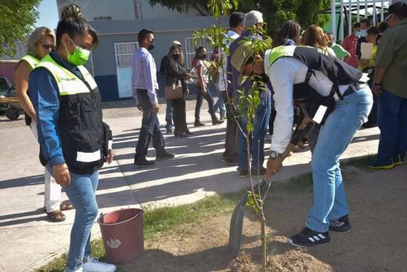 Soledad de Graciano Sánchez; SLP.- Con la intención de fomentar la producción de oxígeno, impulsar la purificación del aire, fomentar los suelos fértiles, y evitar la erosión, el Ayuntamiento de Soledad de Graciano Sánchez, encabezado por la alcaldesa Leonor Noyola Cervantes a través de la Coordinación de Ecología a cargo de Dolores Herminia Juárez Herrera, continúa con el plan de reforestación en las diferentes colonias del municipio.