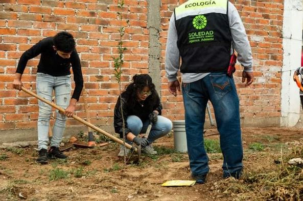 Soledad de Graciano Sánchez; SLP.- Con la intención de fomentar la producción de oxígeno, impulsar la purificación del aire, fomentar los suelos fértiles, y evitar la erosión, el Ayuntamiento de Soledad de Graciano Sánchez, encabezado por la alcaldesa Leonor Noyola Cervantes a través de la Coordinación de Ecología a cargo de Dolores Herminia Juárez Herrera, continúa con el plan de reforestación en las diferentes colonias del municipio.