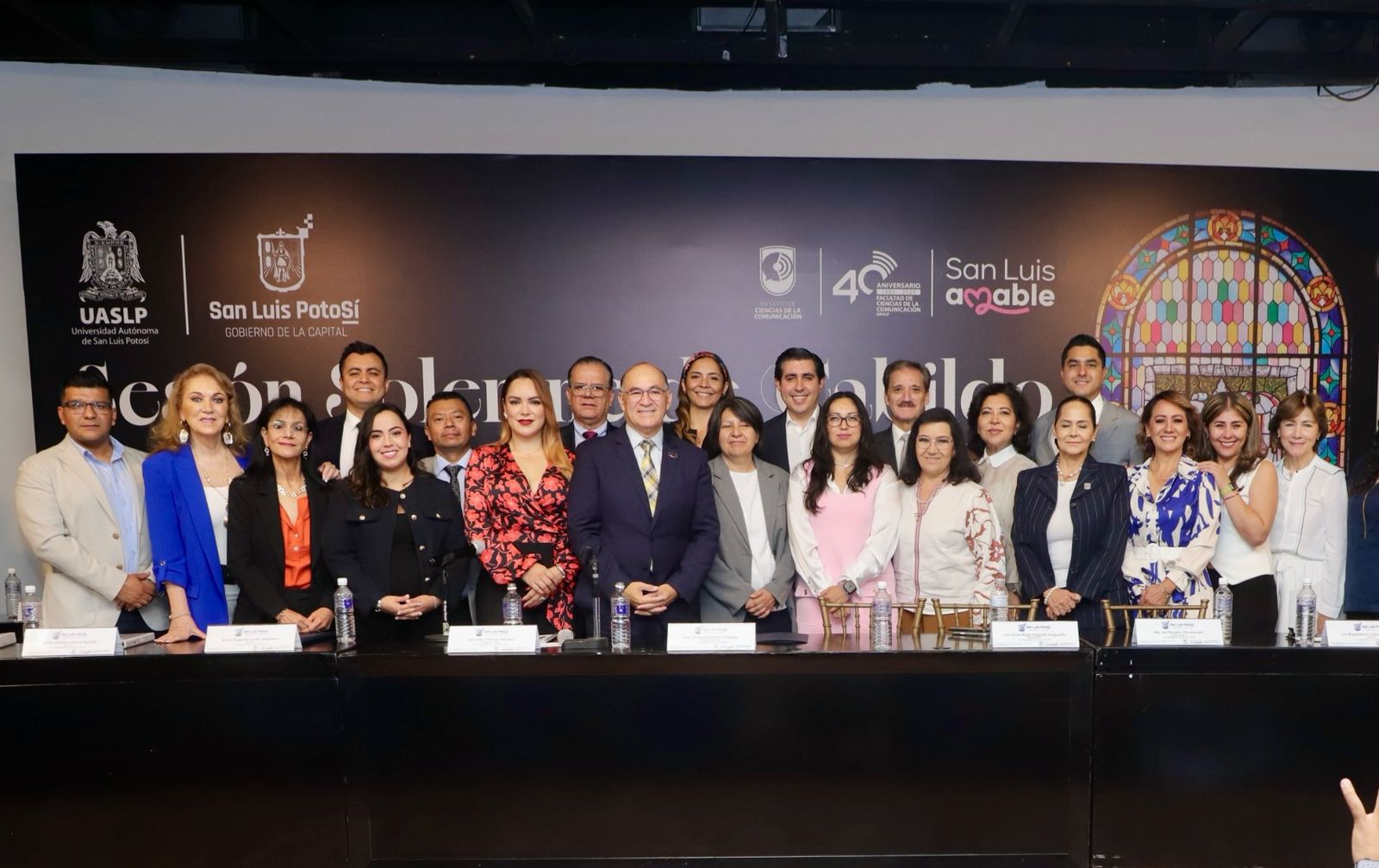 En una sesión solemne con motivo del 40º aniversario de la Facultad de Ciencias de la Comunicación de la Universidad Autónoma de San Luis Potosí (UASLP), el alcalde Enrique Galindo Ceballos, regidores, síndicos y autoridades universitarias refrendaron la colaboración institucional para impulsar el desarrollo de la capital.