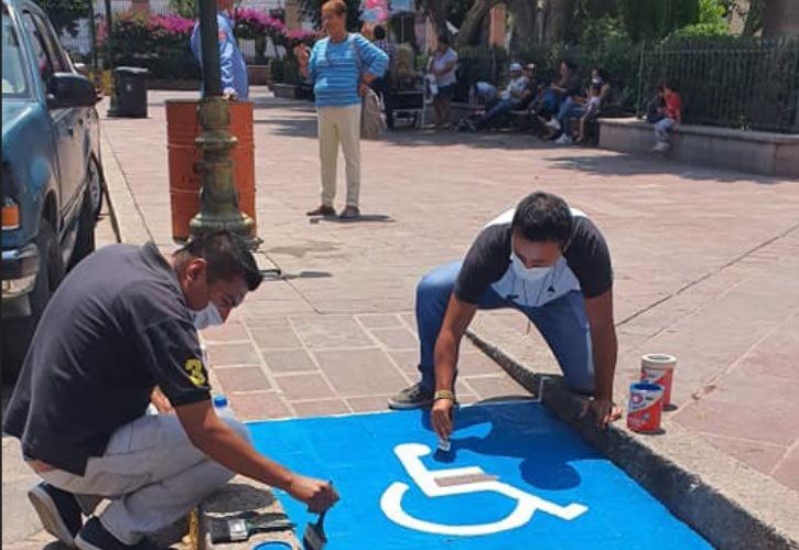 TIERRA NUEVA, S. L. P. – Con el propósito que las zonas de uso exclusivo para personas con capacidades diferentes sean respetadas por los conductores de vehículos automotores, la actual administración municipal que encabeza el alcalde Margarito Chaverría Delgado dio instrucciones para realizar trabajos de balizamiento en los espacios habilitados para esas personas, principalmente en las inmediaciones de Plaza Principal.