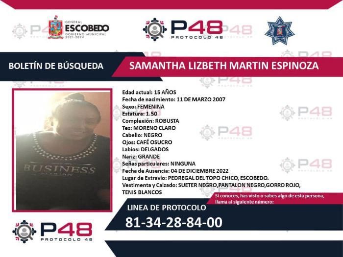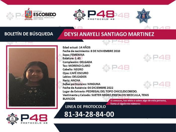 Escobedo, N.L.- Deysi Anayeli Santiago Martínez (de 12 años) y Samantha Lizbeth Martin Espinoza (de 15 años) salieron en rumbo a entregar un pedido de donas, pero no han regresado a su casa desde el sábado 3 de diciembre.