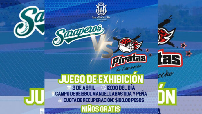 SANTA MARÍA DEL RÍO, S. L. P. – Uno de los tres juegos de exhibición que tendrán las novenas de beisbol Saraperos de Saltillo y Piratas de Campeche, será en esta cabecera municipal, en el campo Manuel Labastida y Peña, el cual está programado para dar inicio a las 12:00 horas el sábado 2 de abril. Antes, el viernes 1 del mismo mes sostendrán otro encuentro en la capital potosina y, el tercero en Cuauhtémoc.