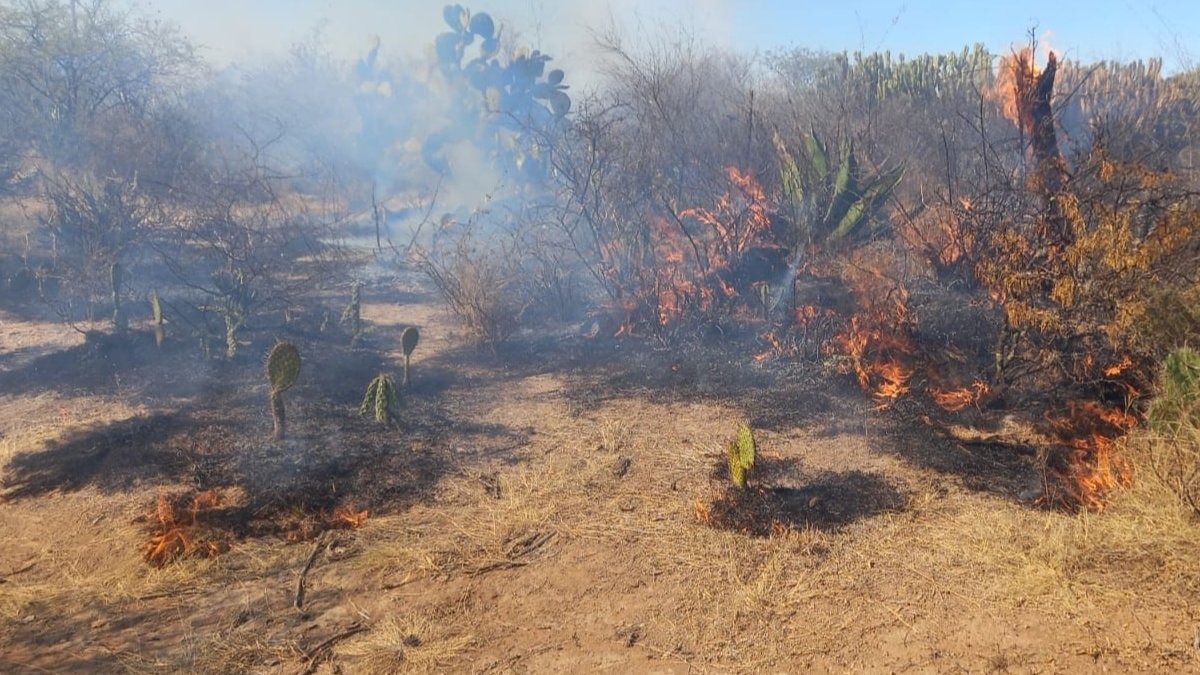 TIERRA NUEVA, S. L. P. – Voraz incendio se registró en las inmediaciones del racho Villa Nueva, cercano a esta cabecera, el cual solo dejó daños en la flora de la zona. Fue reportado por algunos pobladores de esa localidad al 911 de atención a emergencias y acudió personal de Protección Civil Municipal y Ecología, además de personal de la Dirección General de Seguridad Pública Municipal.