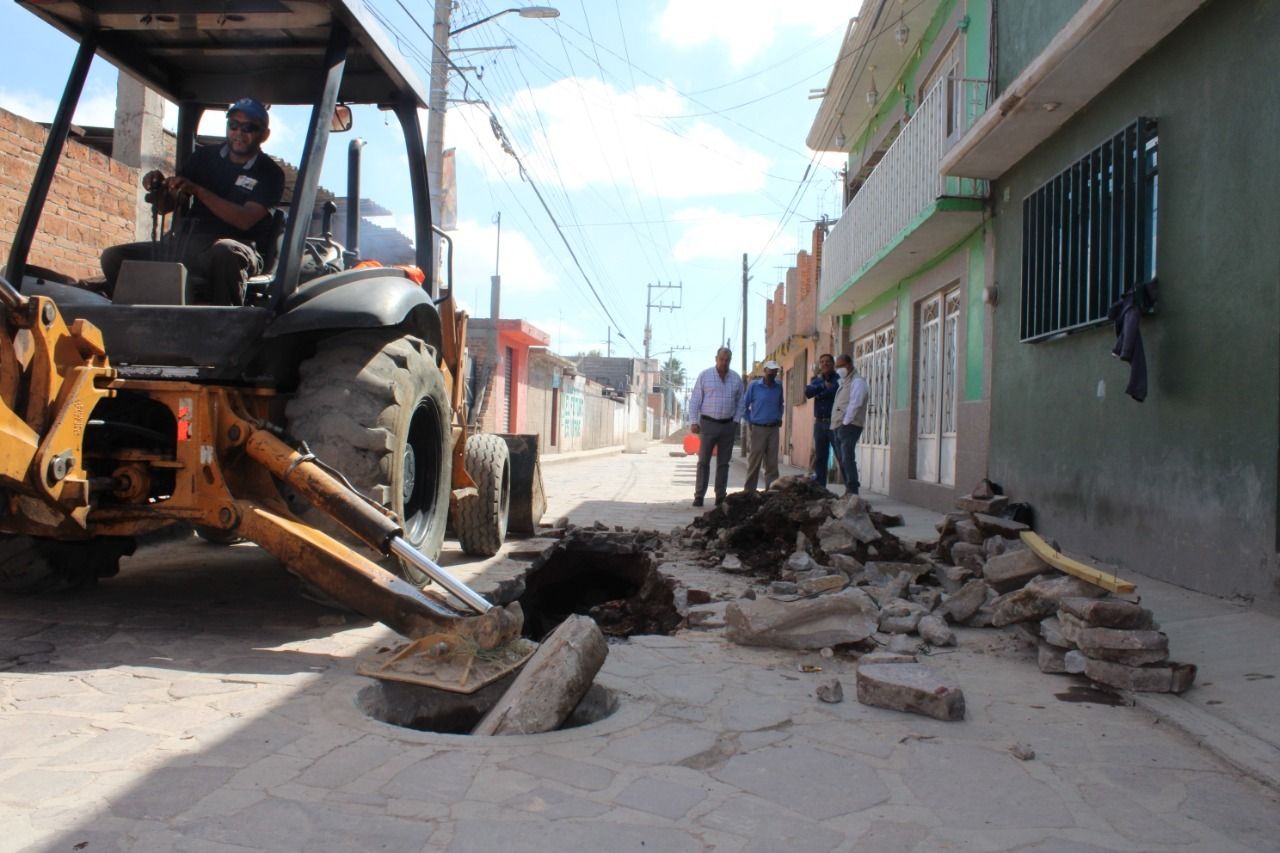Con el objetivo de atender de manera rápida las necesidades de la población y como parte de las acciones inmediatas instruidas por el Alcalde Enrique Galindo Ceballos, la Delegación de Villa de Pozos trabajó en la reparación de un drenaje colapsado en la calle Ignacio López Rayón, una de las avenidas principales en la cabecera de la demarcación.