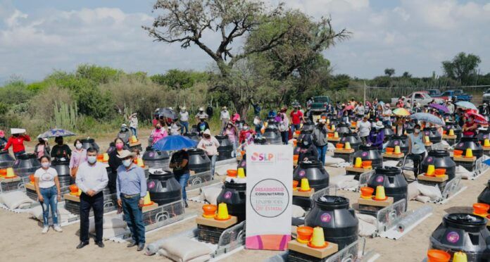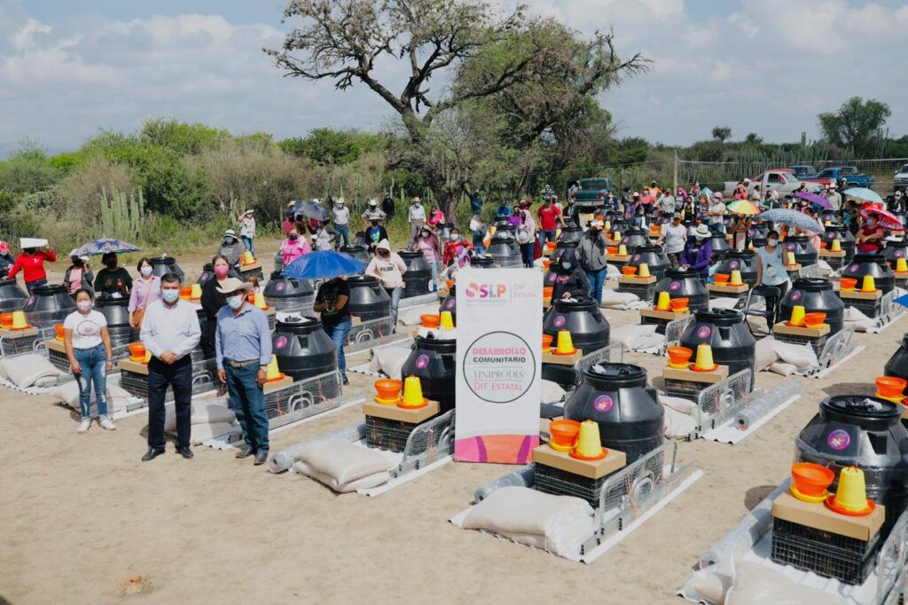 “La instalación de granjas avícolas ha sido una estrategia exitosa, ya que brinda beneficios inmediatos para apoyar una alimentación sana en los hogares potosinos, y permite a las madres de familia tener una pequeña empresa en casa”, resaltó Mauricio Castañón Malagón, director de Desarrollo Comunitario y Asistencia Alimentaria del Sistema Estatal para el Desarrollo Integral de la Familia (DIF) al entregar paquetes de granjas y colchonetas a familias de Cerritos de Zavala en la Delegación de Bocas.