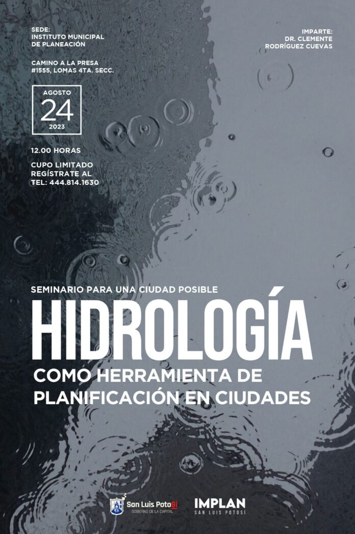 El Instituto Municipal de Planeación (Implan) realiza una serie de seminarios temáticos sobre crecimiento, desarrollo y planificación urbana y sustentabilidad, por lo que hace la invitación a la población en general interesada en aplicar estos conocimientos en el mejoramiento de la ciudad de San Luis Potosí. Sobresale el “Seminario para una ciudad posible. La Hidrología como herramienta de planificación en ciudades”, que se llevará a cabo el jueves 24 de agosto, el cual será impartido por el experto Clemente Rodríguez Cuevas, catedrático de la Facultad de Ingeniería por la Universidad Autónoma de San Luis Potosí.