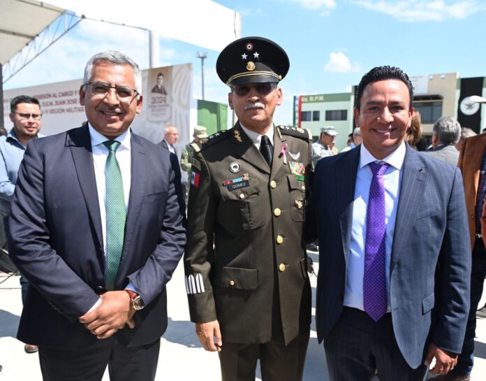 El Secretario de Seguridad y Protección Ciudadana de San Luis Potosí, José Luis Ruiz Contreras, asistió como invitado de honor a la toma de posesión del General de Brigada Diplomado Estado Mayor, Juan José Gómez Ruiz, como Comandante de la IV Región Militar en Nuevo León. Durante el evento, reafirmó su compromiso de colaboración con la Federación para mejorar la seguridad y protección de los 59 municipios del estado. Señaló que este trabajo conjunto es clave para lograr avances en la estrategia de seguridad de San Luis Potosí.