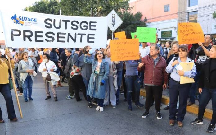 Afiliados al Sindicato Único de Trabajadores al Servicio de Gobierno del Estado (SUTSGE) realizaron este jueves una protesta y bloqueo frente a la Fiscalía General del Estado (FGE), exigiendo que la fiscal general, María Manuela García Cázares, recibiera personalmente una denuncia en contra del Tribunal Estatal de Conciliación y Arbitraje (TECA).