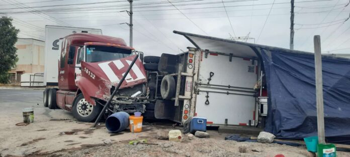 El accidente ocurrió cuando un tráiler International de color rojo que circulaba sobre la avenida CFE no hizo alto al llegar al Eje 140 y chocó con un camión Freightliner tipo caja seca de color blanco que circulaba sobre la avenida CFE.