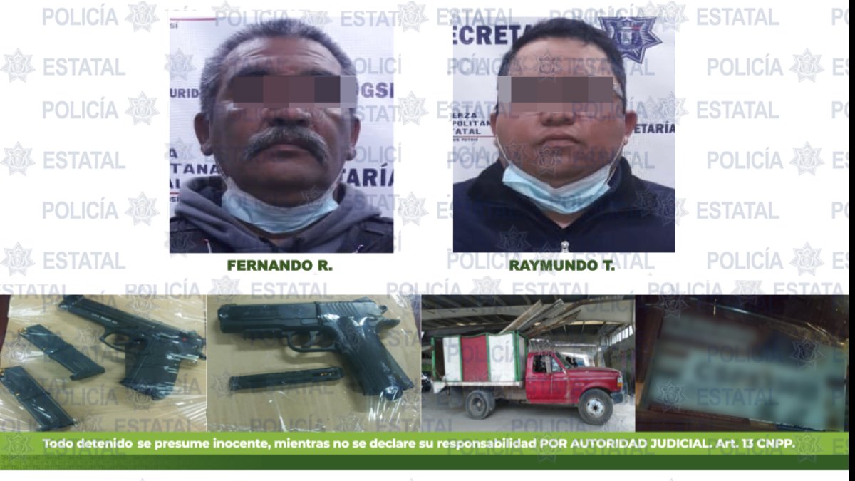 SLP. – Agentes de Seguridad Pública Estatal adscritos al dispositivo de seguridad “Factorías”, efectuaron la detención de dos policías municipales capitalinos y un menor de edad, luego de que minutos antes presuntamente incurrieron en la sustracción de material de una planta ubicada en la Zona Industrial, entre otras cosas se les aseguró un arma de fuego y cartuchos útiles.
