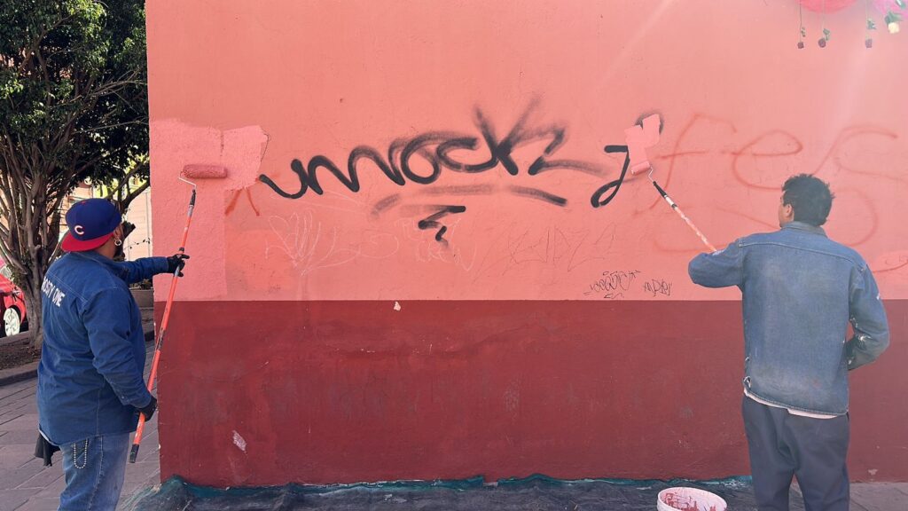 Durante el mes de febrero, la Cuadrilla de Respuesta Inmediata elaboró y colocó 20 tapas de registro en diferentes puntos de la zona centro que mejoran la imagen y la seguridad de las zonas peatonales, se lavaron y pintaron 22 cortinas de establecimientos comerciales, se realizó limpieza profunda a 15 mil 500 metros cuadrados de calles, plazas y jardines y se retiraron 110 metros cuadrados de grafiti.