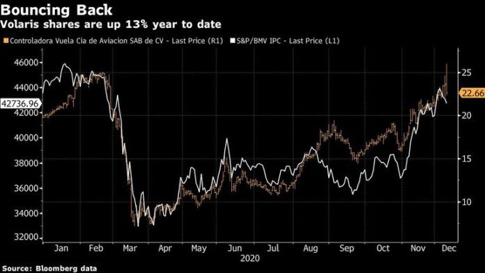 Controladora Vuela Cia. de Aviación, como se conoce oficialmente a Volaris, esperaba recaudar efectivo en los próximos 12 meses. Pero una recuperación en el precio de sus acciones y las perspectivas de las vacunas abrieron una ventana para una oferta de acciones en EE.UU. ahora, dijo Beltranena.