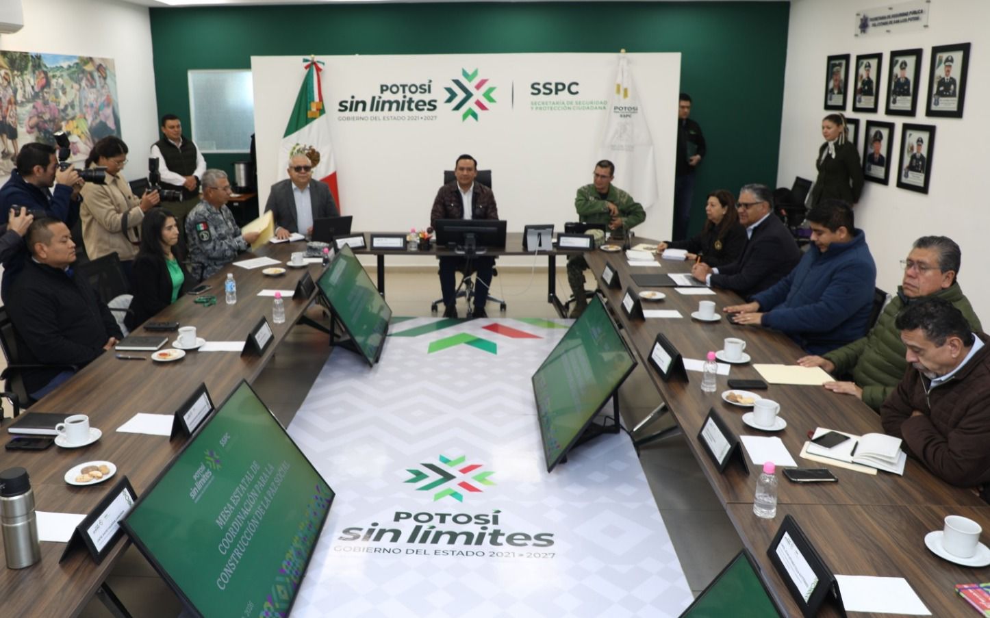 En el marco de la Mesa de Coordinación para la Construcción de la Paz Social, se presentaron los avances en materia de seguridad y procuración de justicia en San Luis Potosí. La reunión, llevada a cabo la mañana de este viernes, contó con la presencia del Secretario General de Gobierno, J. Guadalupe Torres Sánchez, y el titular de la Secretaría de Seguridad Pública y Ciudadana del Estado (SSPCE), Jesús Juárez Hernández.