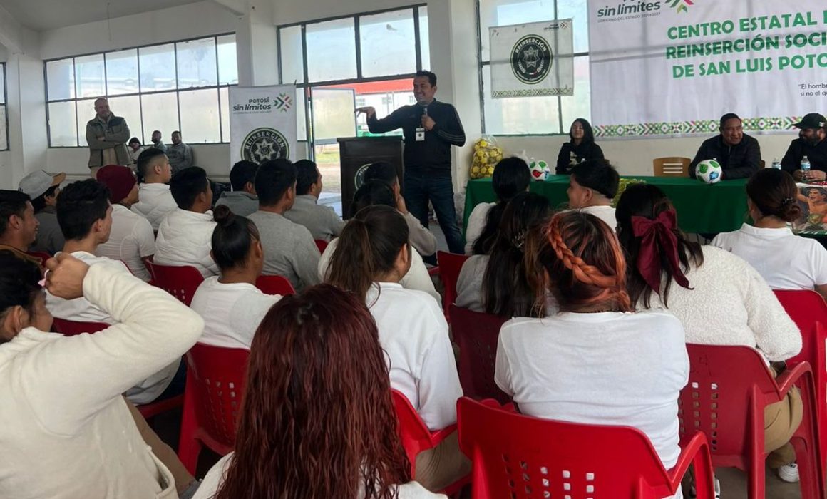 Cumpliendo las instrucciones del Gobernador del Estado, Ricardo Gallardo Cardona, personal del Inpode acudió al centro penitenciario, donde se llevó a cabo la plática motivacional Más Allá del Fútbol, impartida por el ex director técnico de primera división Idelfonso “Pichus” Mendoza.