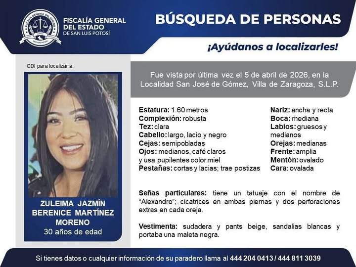 Asimismo, se exhortó a quienes pudieran haberla visto o tener algún indicio sobre su paradero a comunicarse de inmediato con las corporaciones de seguridad o a los números de contacto incluidos en la ficha de búsqueda.